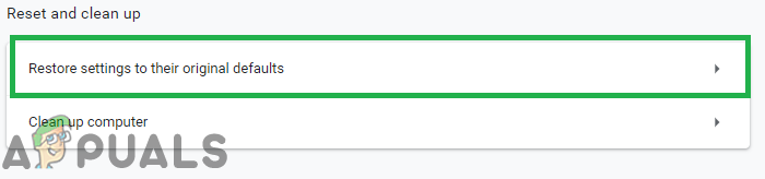 If the configuration files of the Chrome browser have been corrupted the error might be triggered. Therefore, in this step, we will be resetting chrome to its default configurations. For that: