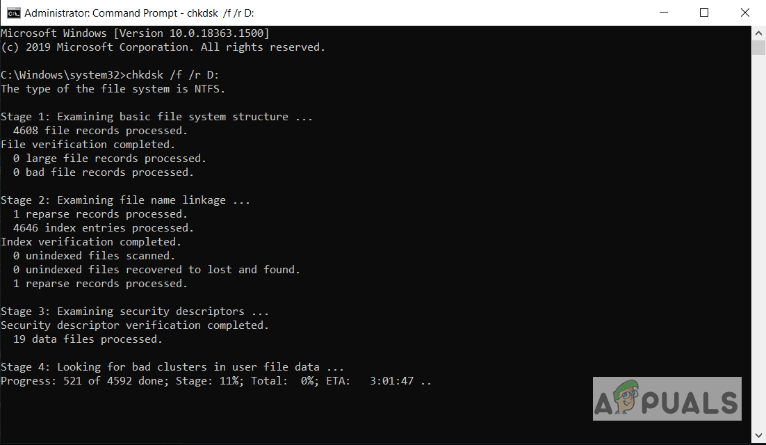 In this method, we will use the Command Prompt to detect and fix any logical File System error on the hard drive. We will use the CHDSK command which works depending on the type of your file system partition.