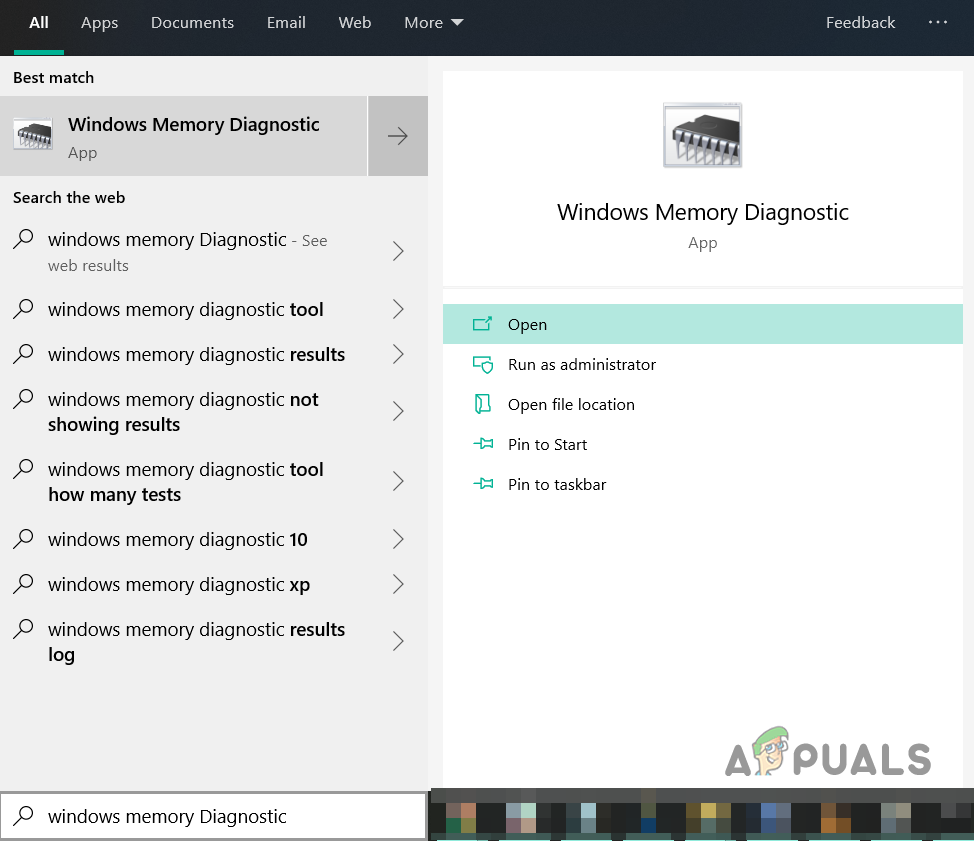 - Go to the Start Menu and Type in Windows Memory Diagnostics and open the program