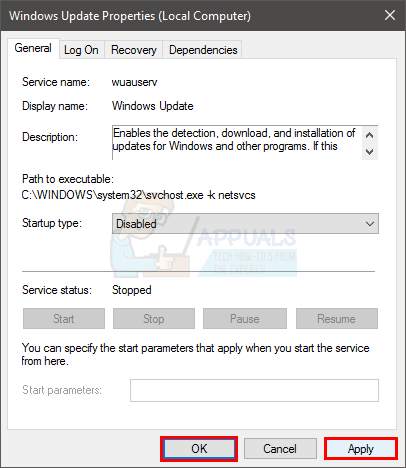 - Click Stop button if the Service Status isn’t set to Stopped