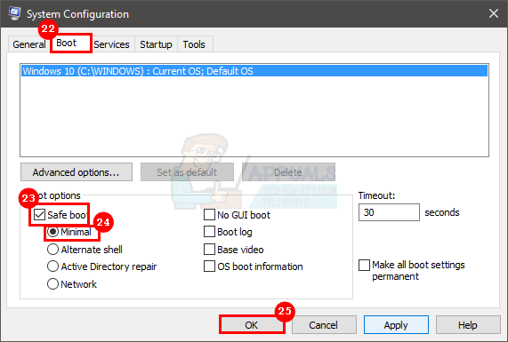 - Select the option Minimal under the Safe Boot option