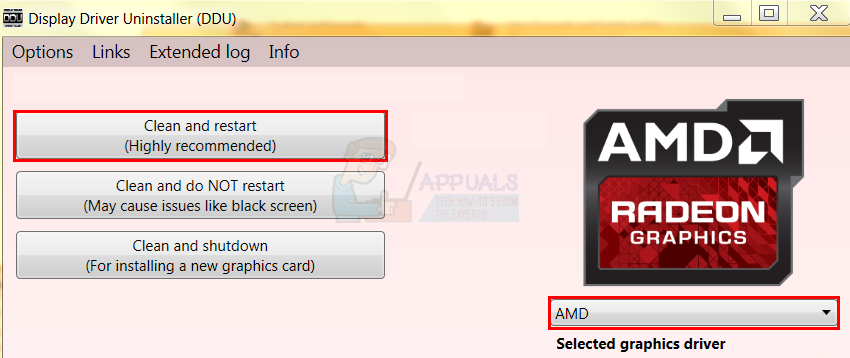 - Select AMD from the drop down menu and click the Clean and Restart (Highly Recommended)