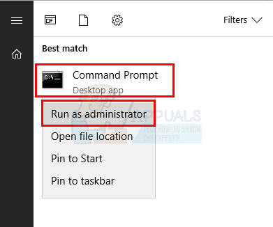 - Right click Command Prompt from the search results and select Run as administrator