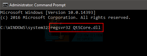 - Type regsvr32 <dll file name> and press Enter. Replace the <dll file name> with the actual dll name (including the .dll extension). For example, it should look like regsvr32 Qt5Core.dll.