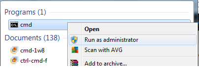 Open the Start Menu. Search for cmd. Right-click on Command Prompt in the search results. Click on Run as administrator in the contextual menu.