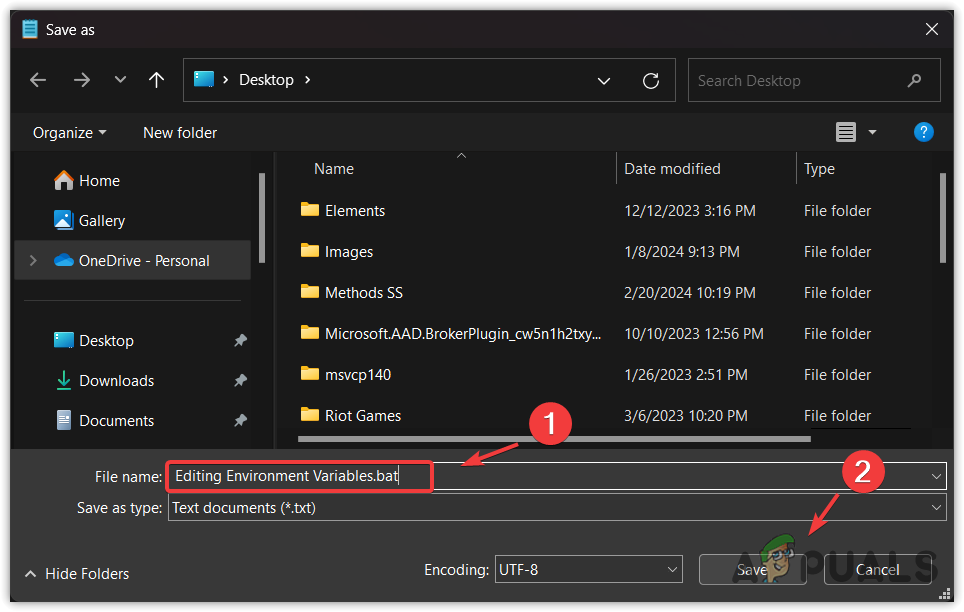 - Include the .bat extension when saving.