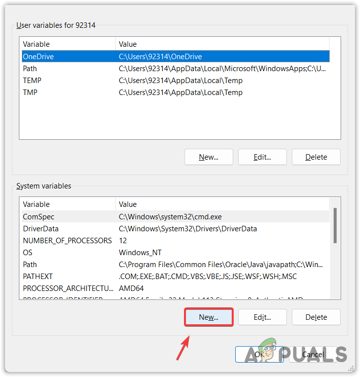 - In Environment Variables, click New under System Variables.