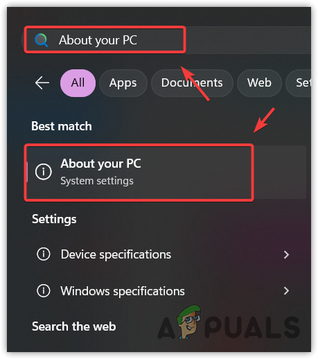 - Press the Win key and type “About your PC”.