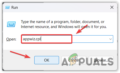 - Press Windows key + R and type “appwiz.cpl“.