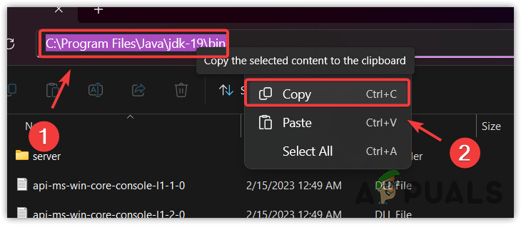 Your system may have a different JDK version installed. - Copy the Java path from the address bar.