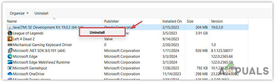 - Find Java, right-click, and select Uninstall.