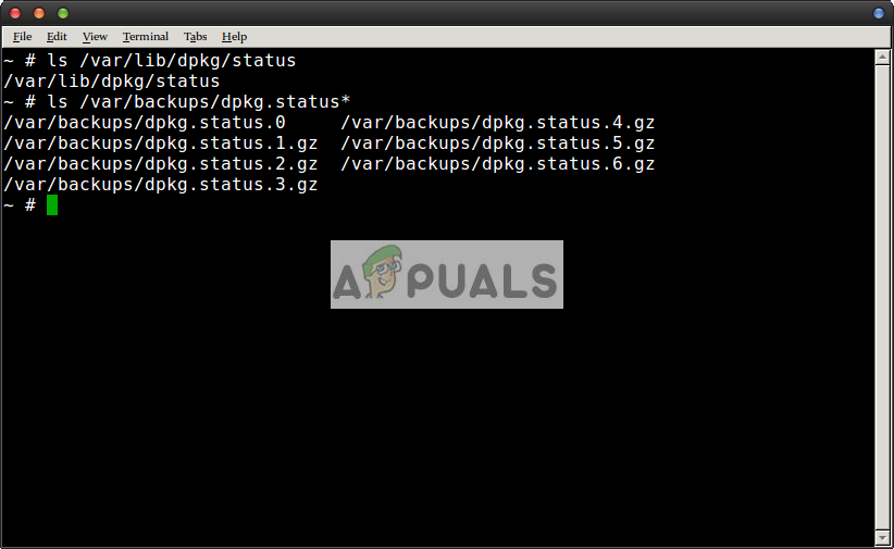 Make sure that you see a status file in the results. You’ll normally just get a line that reads /var/lib/dpkg/status with nothing else after it before it returns you straight to the prompt. If that’s the case, then you have a file there and you should be okay. Close all the programs that you were working in after saving and then reboot.