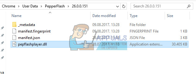 - Visit the following location on your computer: C:\Users\<YourID>\AppData\Local\Google\Chrome\UserData\PepperFlash\20.0.0.xxx\pepflashplayer.dll