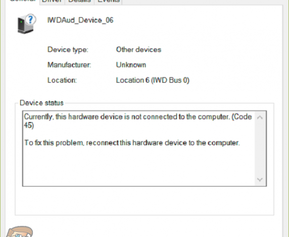 “Currently, this hardware device is not connected to the computer (Code 45)”