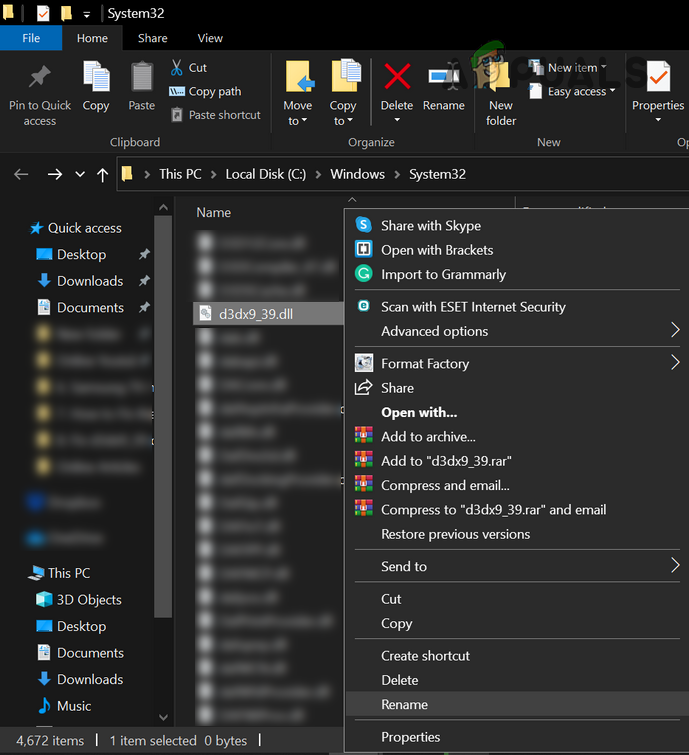 - Now rename the d3dx9_39.dll file (if you feel safe, then you may delete the file) and then reboot your PC.