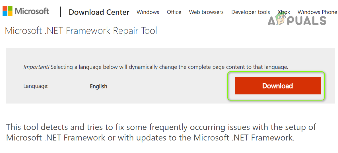 - Launch a web browser and download the Microsoft .Net Framework Tool from the Microsoft website.