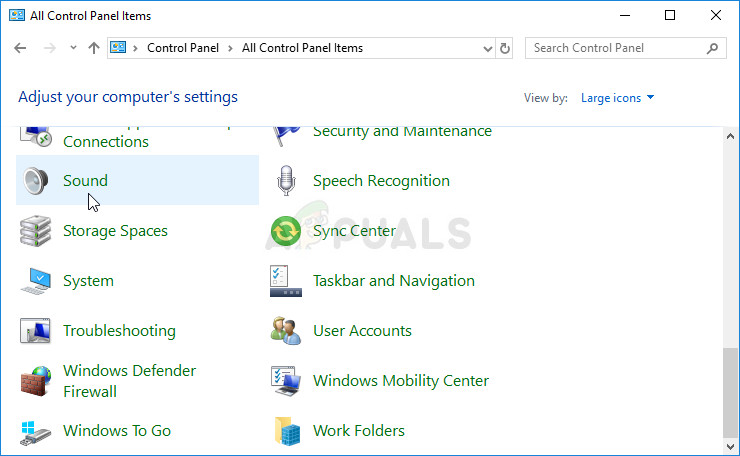 - Right-click on the Volume icon located at the bottom right part of your screen and choose the Playback devices option. An alternative way would be to open Control Panel on your PC and set the View by option to Large icons. After that, locate and click on the Sounds option in order to open the same window.