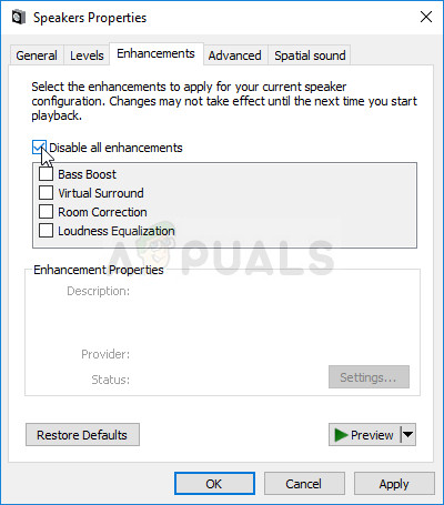 This specific solution was presented both on several forum entries as well as on a blog written by a user who has been struggling with this problem for several days. It appears that certain computers are affected by audio enhancement on Windows PC and you should disable it in order for your CPU usage to go back to normal again.