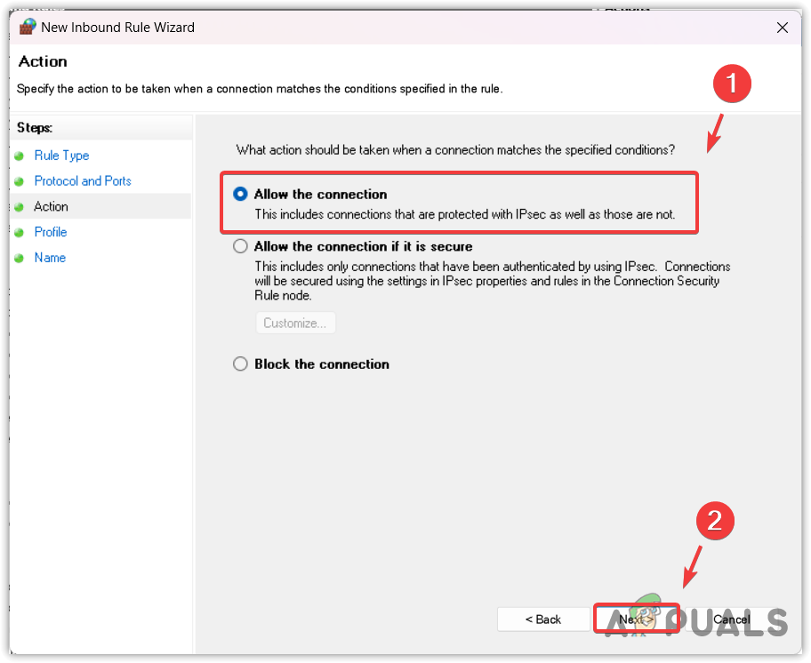- Keep the option Allow the connection selected and proceed by clicking Next.