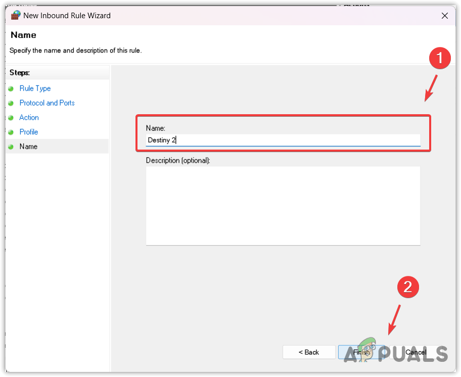 - From the left panel, select Outbound Rules, and add the respective TCP and UDP ports for Destiny 2, following the steps outlined above.