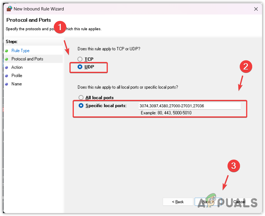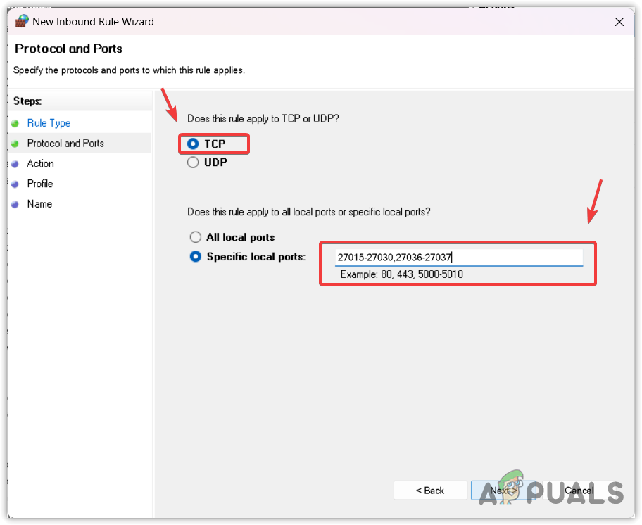 - Repeat the process to add the port 27036-27037 and then proceed to add the required UDP ports.