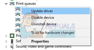 - Navigate through all the hardware, and right-click on the device you are experiencing the error, and select “Update driver”.