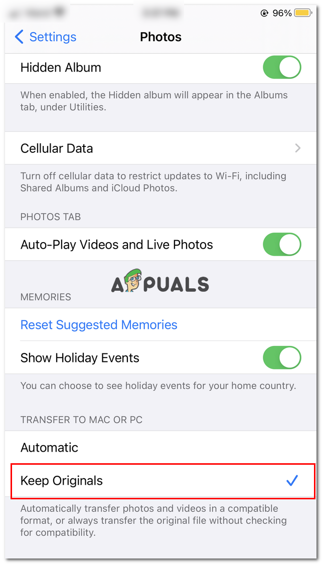 - Now select the option “Keep Originals” here and try transferring the files again.