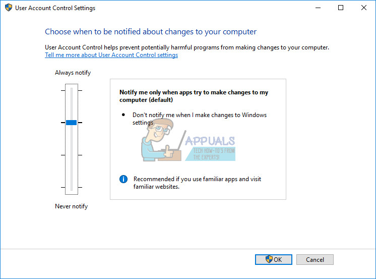 - We recommend you don’t turn it off completely because it won’t notify you when apps try to make changes to your computer and when you make changes to Windows settings.