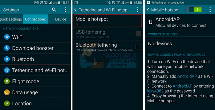 - In the Settings app, click the Mobile hotspot and tethering option and click on Mobile hotspot. Choose the password you want by clicking the current one and click on the slider at the top right part of the screen to turn on the hotspot.