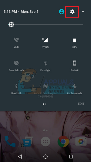 - Pull down the menu on your Android phone and click the gear icon at the top-right corner in order to open Settings.