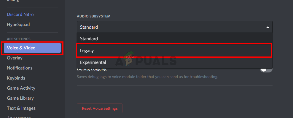 Turning on the legacy mode has fixed the issue for a considerable number of Discord users. This mode can be turned on via the Discord app settings. If you are experiencing the issue during the usage of mic or other voice/video interactions then the issue is most likely to be fixed by the steps given below. Follow the steps given below to turn on the legacy mode to see if it resolves the issue for you.
