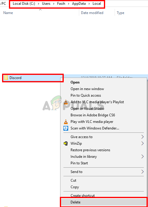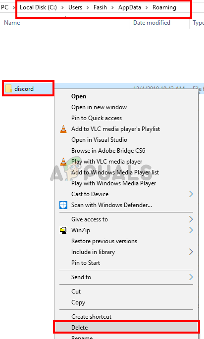 - Locate the Discord folder. Right-click the Discord folder and select Delete. Confirm any additional prompts