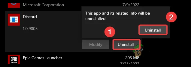 - Find Discord, select it, and click Uninstall.
