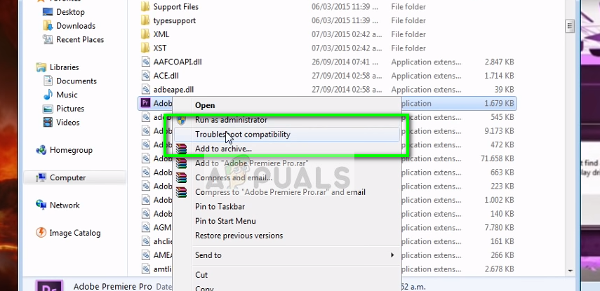 - Select “Troubleshoot Compatibility” from the list and let the Windows prompt detect problems.