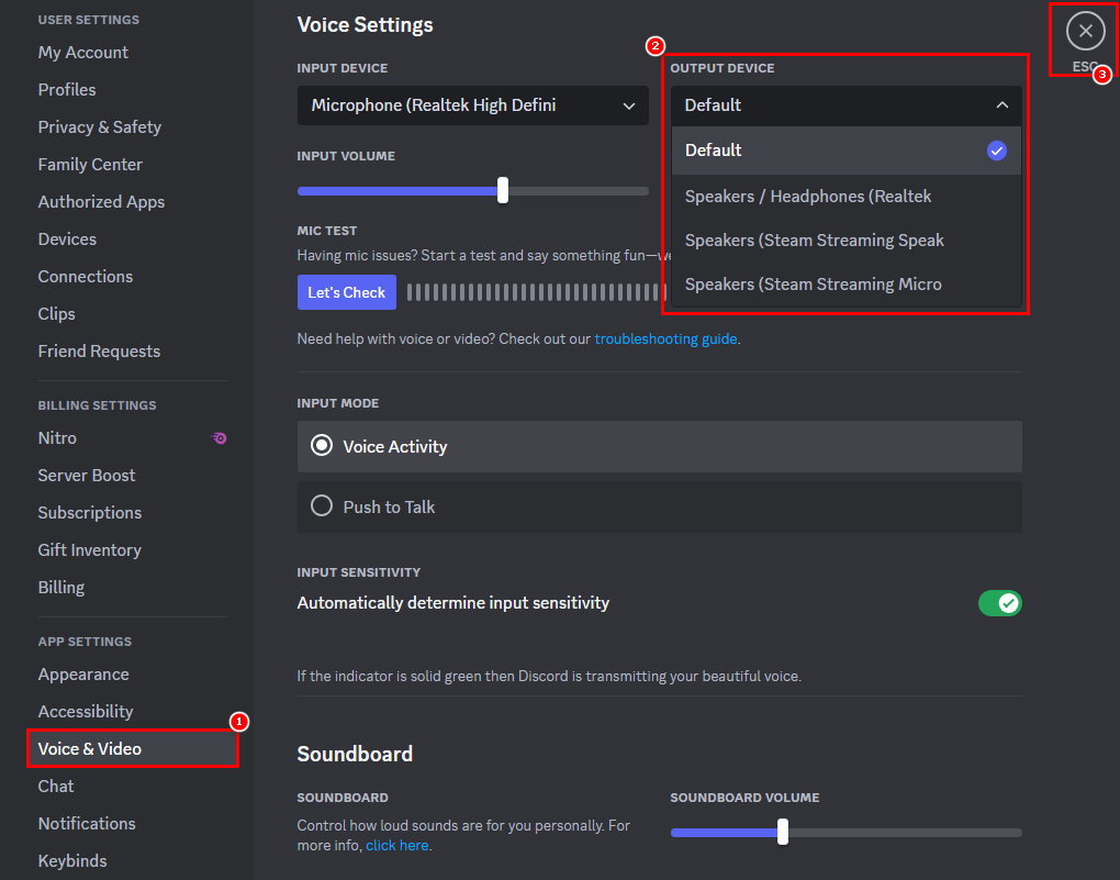 Sometimes, the issue might simply be related to your output device. If you aren’t hearing any or most of the sounds from Discord, the Discord settings might be set to a different output device. Changing the settings to use your intended output device will often solve this issue.