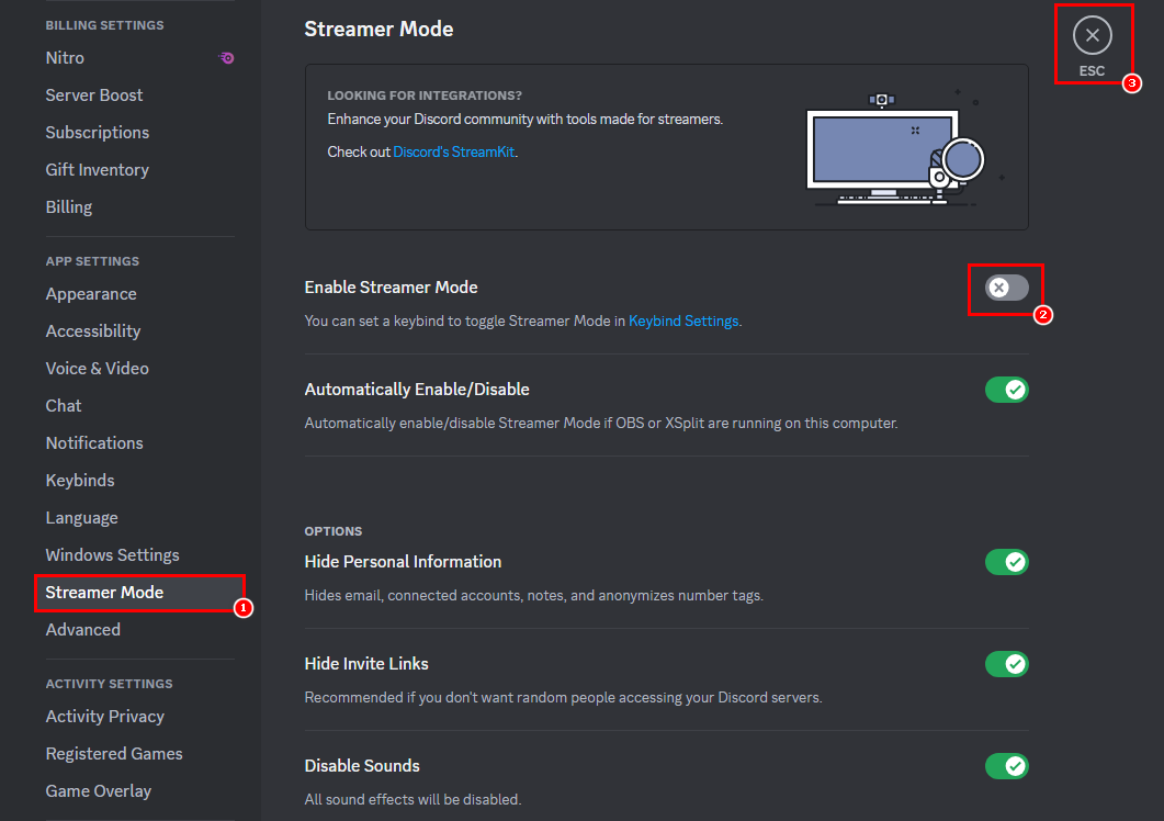 Note: Streamer Mode can automatically enable itself if the app detects you’re running streaming software like OBS/XSplit, even if you haven’t manually turned it on. It’s advised to check this setting regardless.