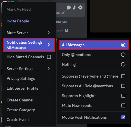 - Right-click on the server icon in the left panel where you’re missing notifications.