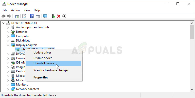 - Confirm any dialogues which may ask you to confirm the uninstallation of the current graphics device driver and wait for the process to finish.