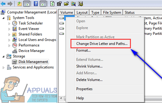 - In the list of drives connected to your computer, locate and right-click on the affected external hard drive, and click on Change Drive Letter and Paths….