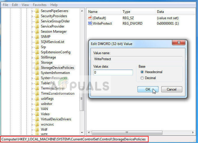 Write protection is a registry entry in Windows registry editor and it acts a safeguard by limiting certain programs and applications by writing on storage devices. If the ‘WriteProtected’ flag is turned on, you will not be able to write data into your storage device successfully. To counter this, we will open the registry editor and change the key.