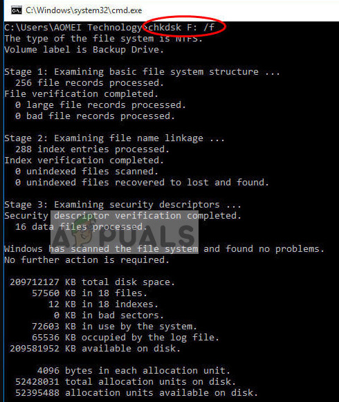 If this error message is occurring on your hard drive, you should check it for bad sectors or logical errors. If any of these errors are present, Windows will be unsuccessful at changing the attribute type of the storage device. This method is not limited to hard drives; you can also chkdsk removable devices provided that they are recognized by the system. 1