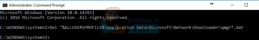 Del “%ALLUSERSPROFILE%\ApplicationData\Microsoft\Network\Downloader\qmgr*.dat”