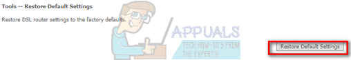 - Here you will be seeing a button named Restore Default Settings. Click it. You will be disconnected with your router and it will resort back to factory settings.