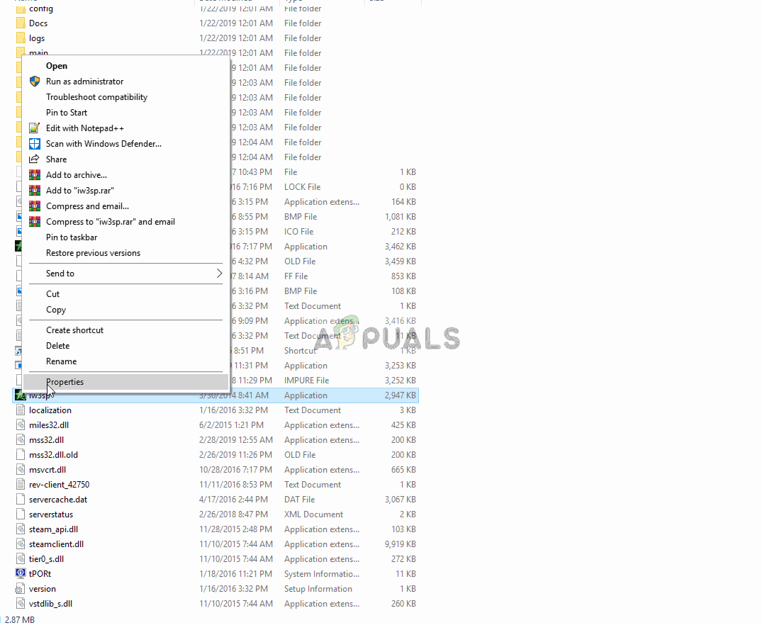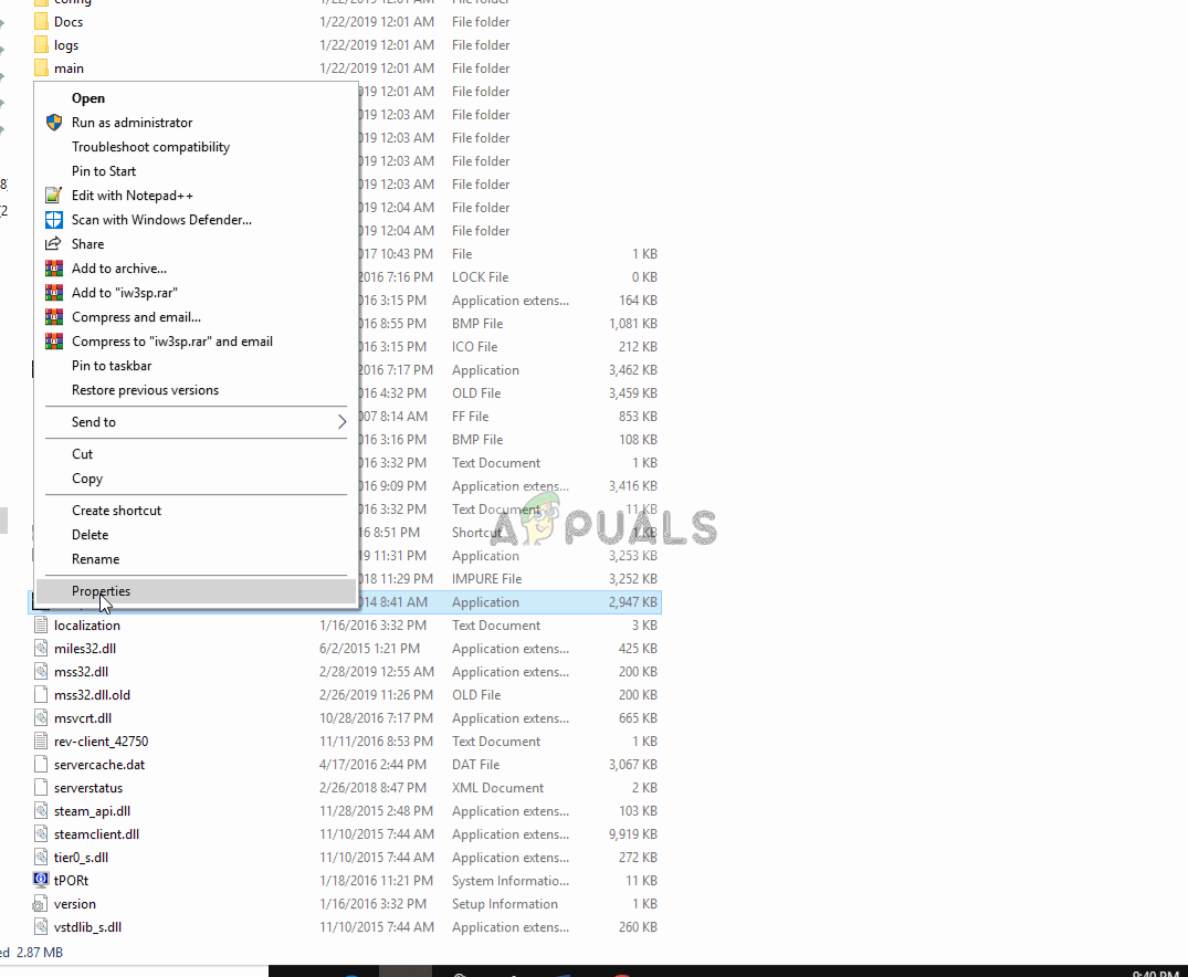- Right-Click on the game executable and select properties.