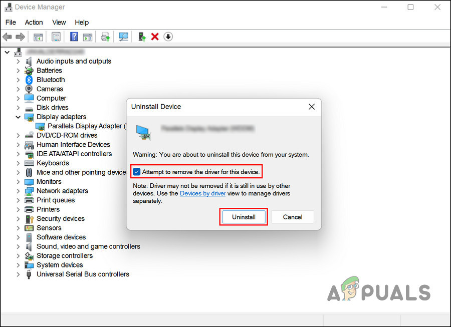 Uninstall the driver - Select the Attempt to remove the driver for this device option and click Uninstall again.