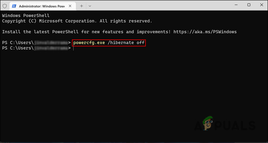 Choose Windows Terminal (Admin) - In the following window, type powercfg.exe /hibernate off and hit Enter to execute the changes.