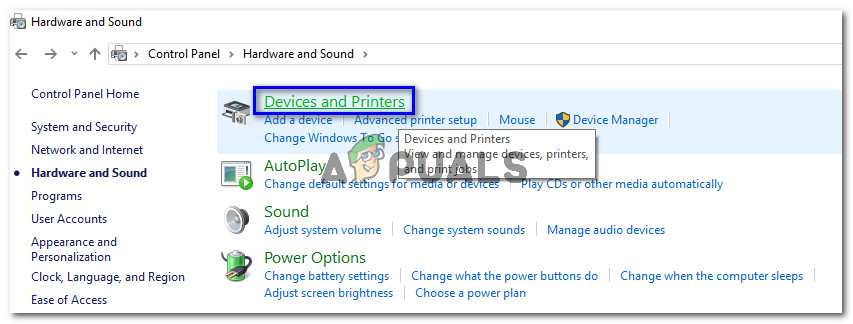 Accessing the Control Panel using the Run dialogue box - In the Control Panel, click on Hardware and Sound. Now, click on Devices and Printers to view all devices connected to your PC.