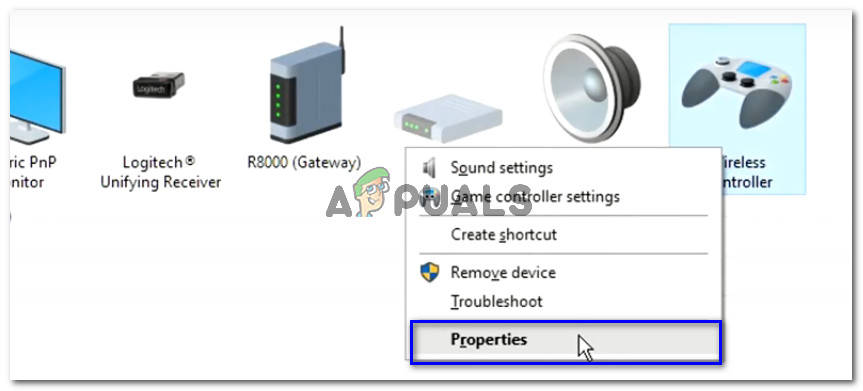 Devices and Printers connected to PC - Reconnect your DS4 controller to your PC. An icon of a game controller will appear as shown in the image below. Right-click on the icon and select Properties.