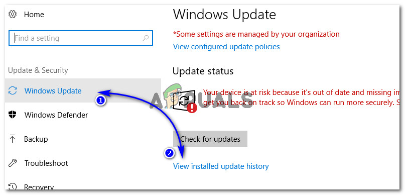 Installed update history in Windows 10 Settings - Next, click on Uninstall updates. Wait for the installed updates list to populate.