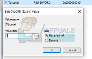 - Set the new name as “TdrLevel” and set the value as “0”. Press OK to save changes and exit.